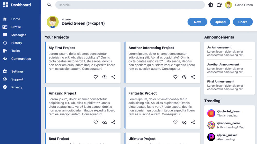Fully responsive admin dashboard layout with darkmode and using CSS grid to adjust the number of cards per row as the window size changes. Made as part of The Odin Project. ダークモードとCSSグリッドを使用し、ウィンドウサイズの変化に応じて1行あたりのカード枚数を調整する完全レスポンシブな管理者用ダッシュボードレイアウトです。The Odin Projectの一環として制作されました。