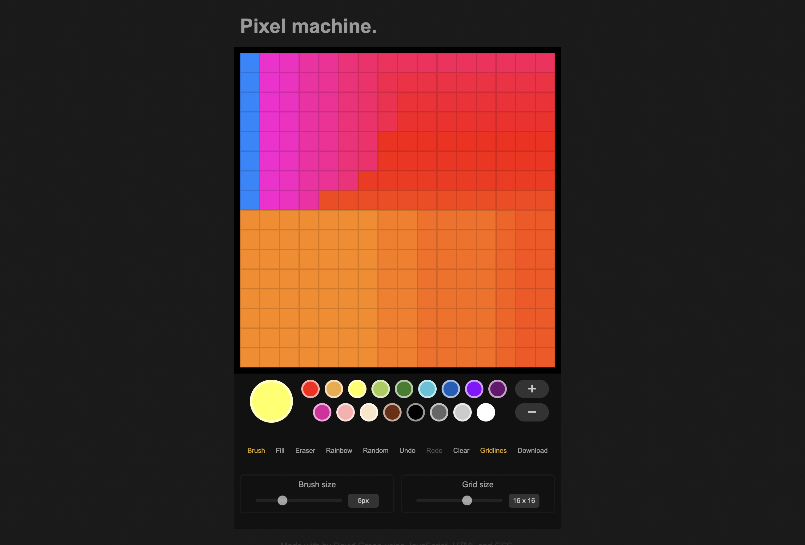 Create and export retro pixel art right from your desktop browser. It offers a range of features such as palette editing, brush size customization, adjustable grid size, and the ability to undo and redo your changes, and much more. レトロなピクセルアートをデスクトップのブラウザから直接作成し、書き出すことができます。パレット編集、ブラシサイズのカスタマイズ、変更を元に戻す・やり直す機能など、さまざまな機能を提供します。
