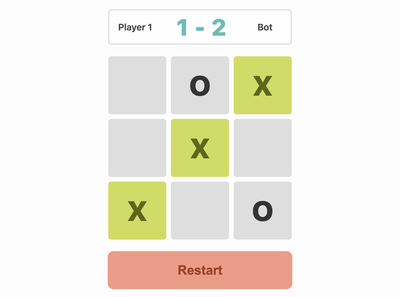 This classic game has an A.I. bot which uses a minimax algorithm to calculate perfect moves. It makes use of JavaScript module patterns and IFFEs to break up the code into logical blocks with private variables and methods. この古典的なゲームには、ミニマックス アルゴリズムを使用して完璧な手を計算する A.I. ボットが搭載されています。JavaScriptのモジュールパターンとIFFEを利用し、隠れた変数とメソッドを持つ論理ブロックにコードを分割しています。